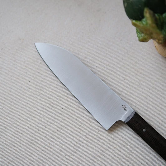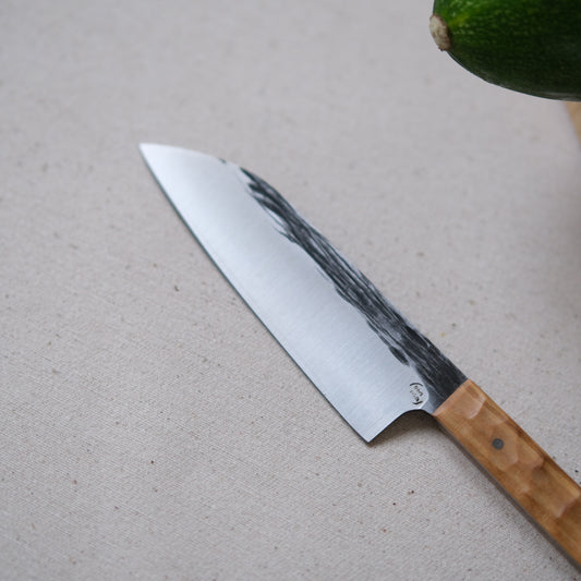 Pour cette première collection de couteaux de cuisine, j’ai souhaité proposer des couteaux polyvalents, maniables et précis qui permettent à la fois de découper, trancher et émincer. Ils conviennent aussi bien à la découpe des légumes, de la viande que du poisson.