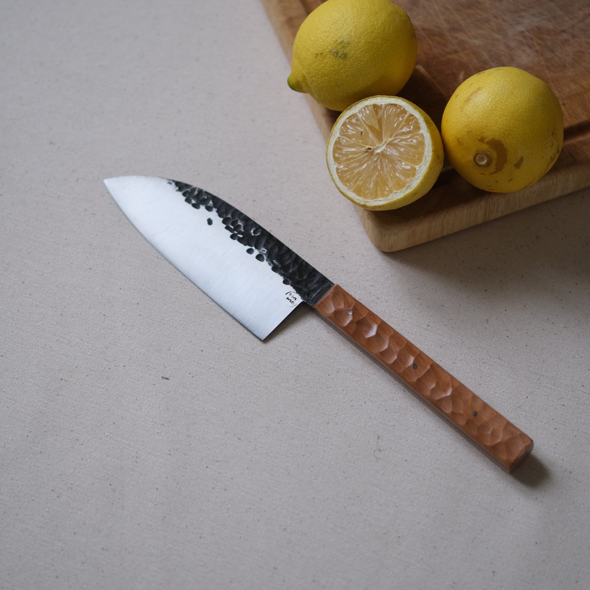 Chaque couteau de cuisine est réalisé entièrement à la main par mes soins dans mon atelier en Touraine (dessin, découpe & mise en forme de la lame, traitements thermiques, découpe et façonnage du manche, polissage, rivetage)