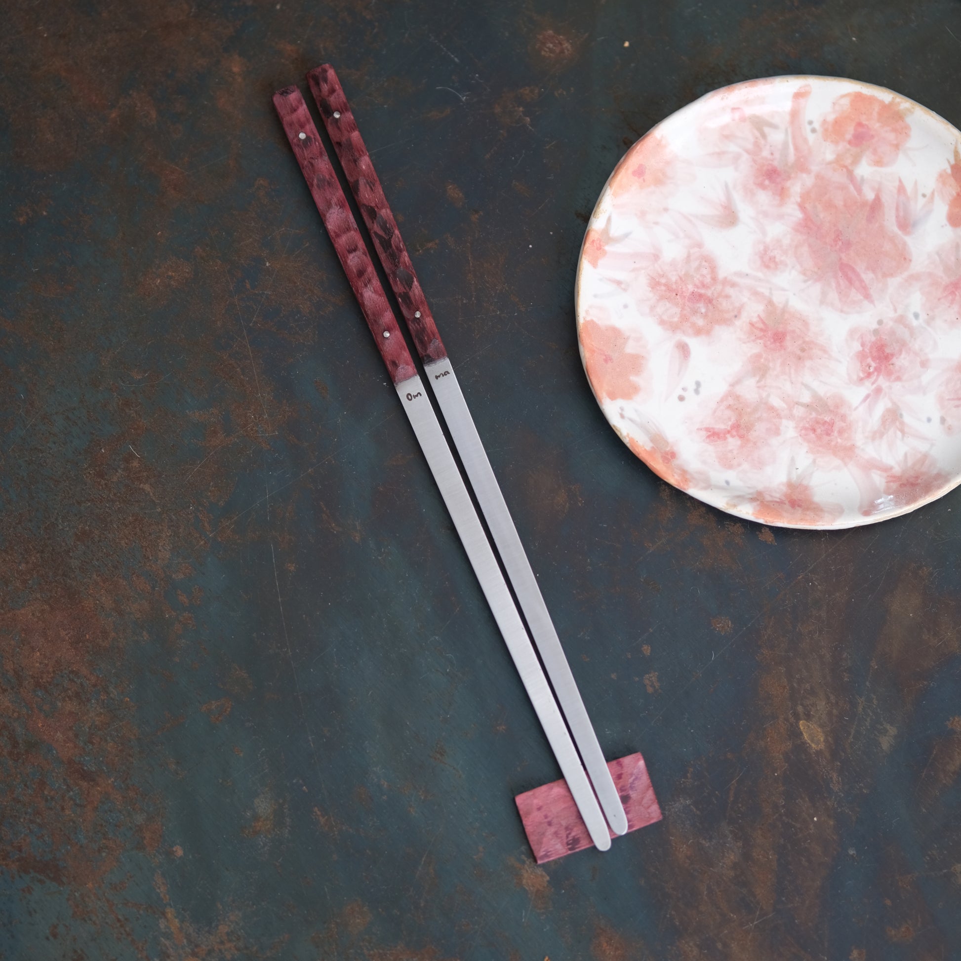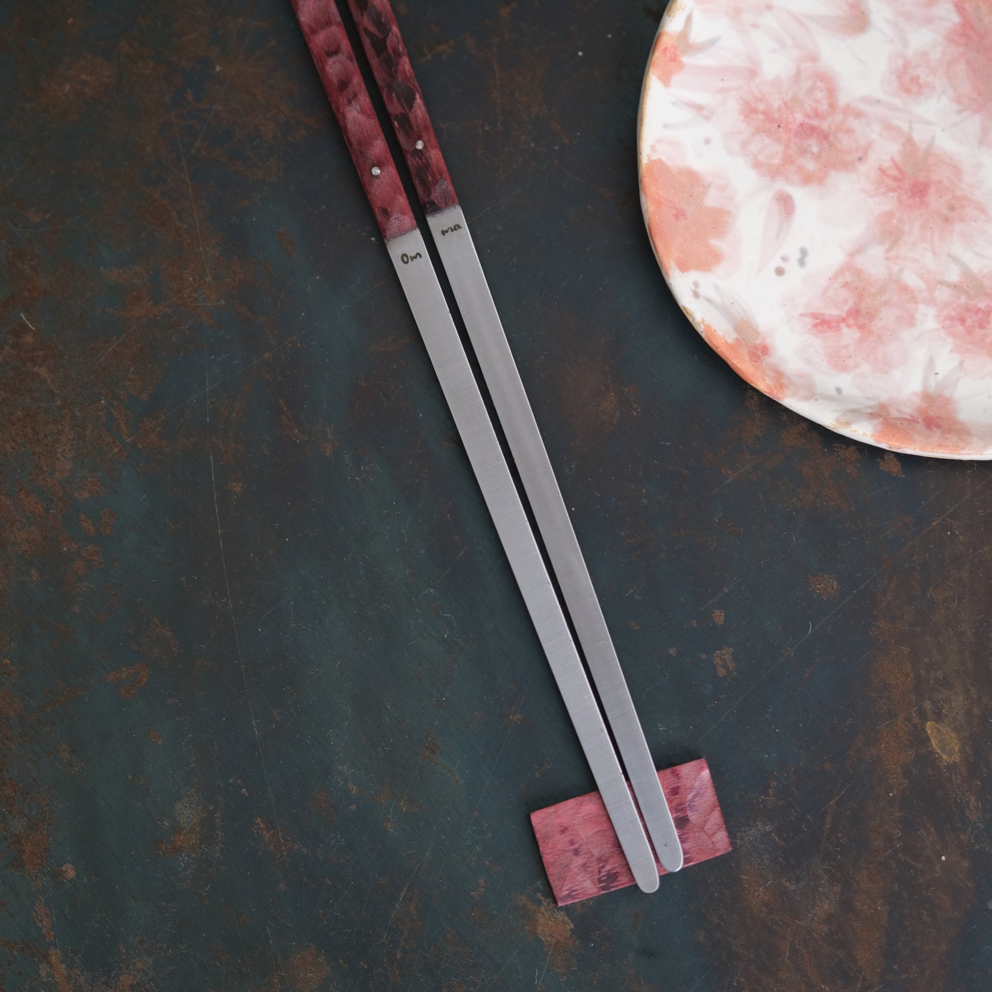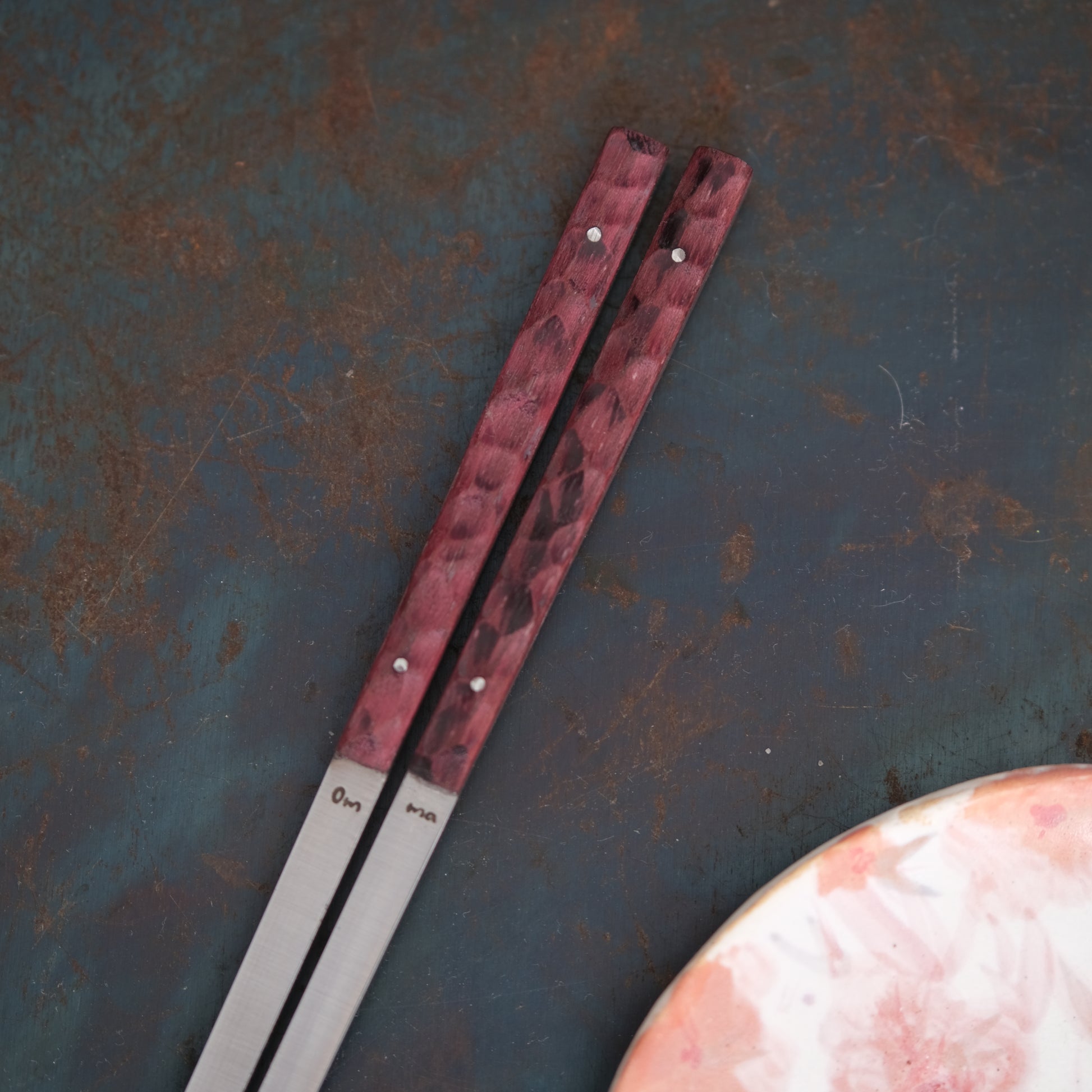 Les baguettes Omma sont réalisés en acier inoxydable et en bois ou matériaux composites pour le manche.