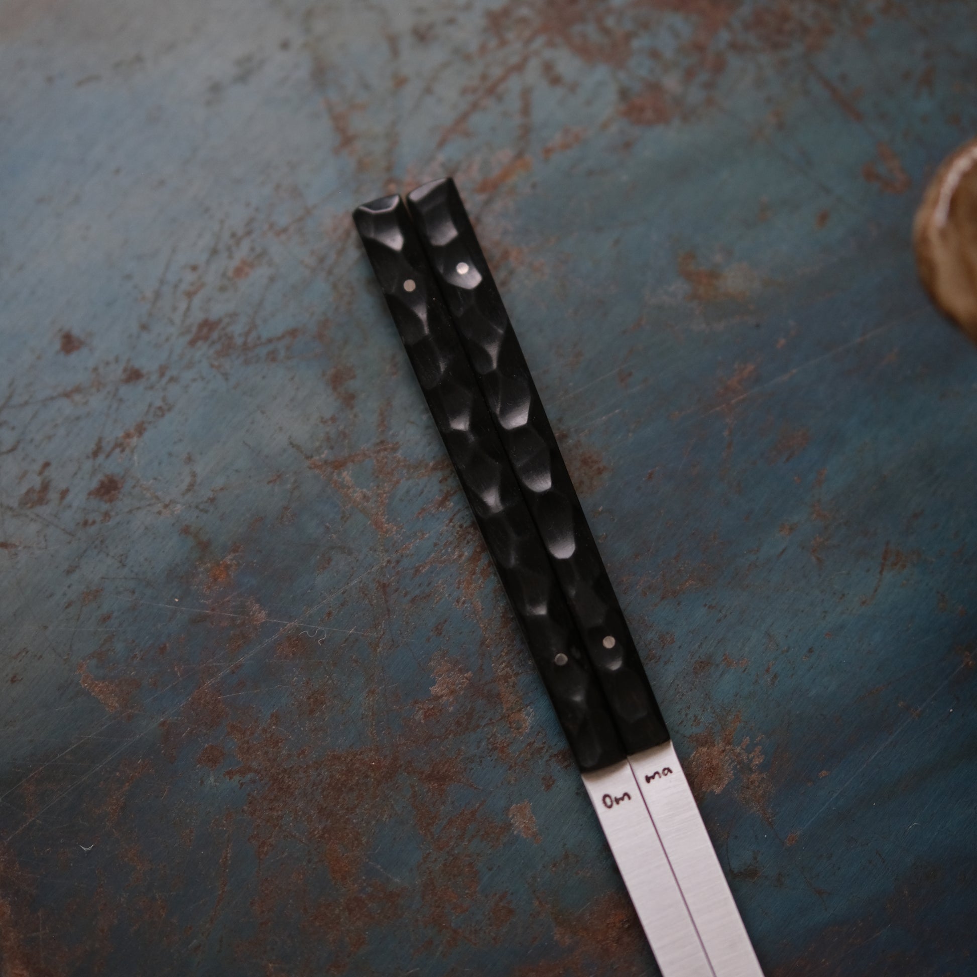 Pour un confort idéal en main, les baguettes sont dotées d'un manche en bois. Il est réalisé en ébène, une essence de bois précieuse à la couleur noire intense. Marque de fabrique d'Omma, le manche est texturé pour apporter du caractère à votre table, mais aussi et surtout, une excellente prise en main.