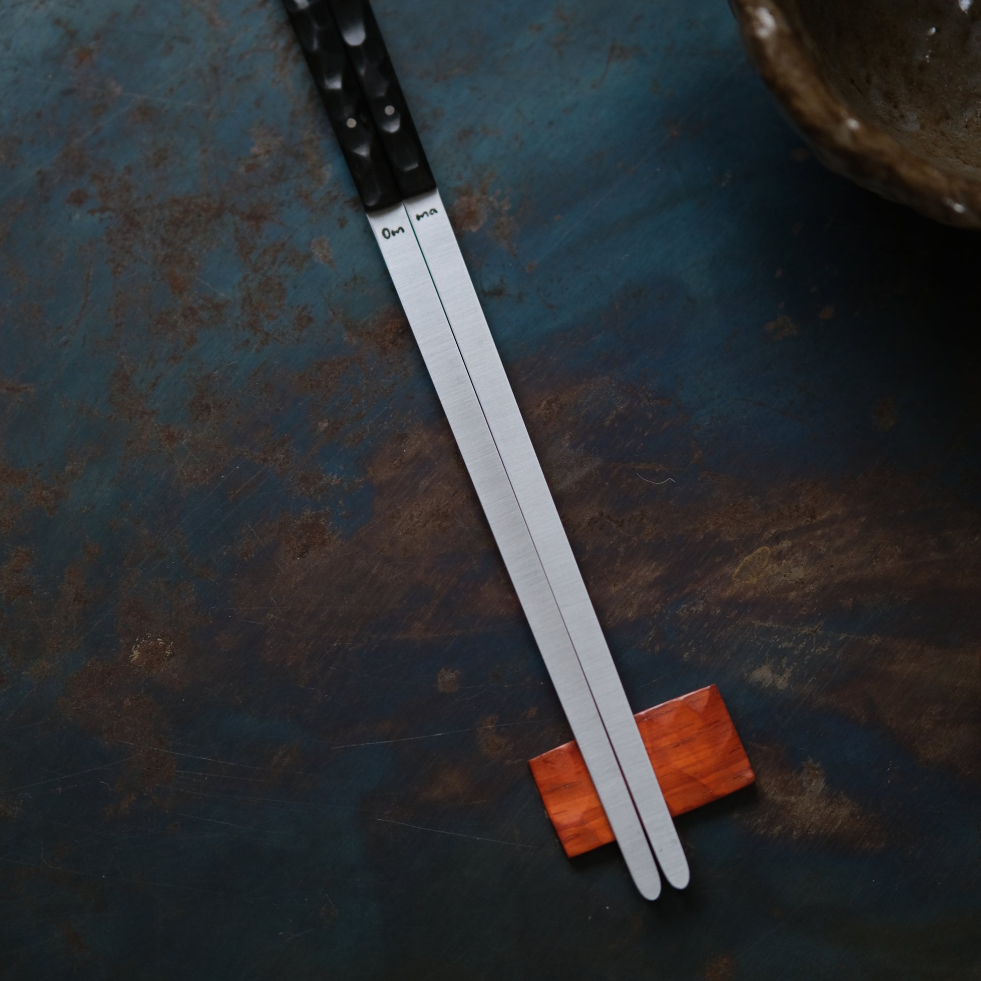 Les baguettes Omma sont réalisés en acier inoxydable et en bois ou matériaux composites pour le manche.