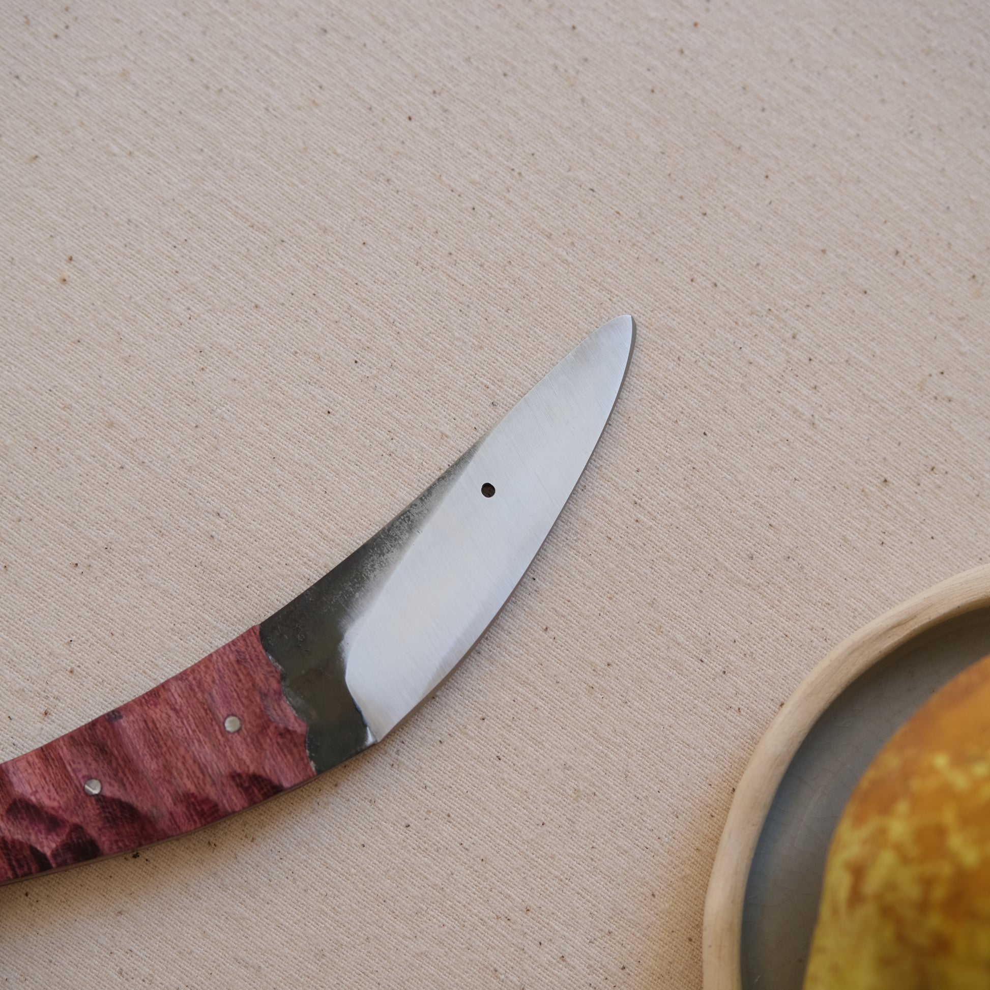 Chaque couteau pour enfant est réalisé entièrement à la main par mes soins dans mon atelier en Touraine (dessin, découpe & mise en forme de la lame, traitements thermiques, découpe et façonnage du manche, polissage, rivetage).