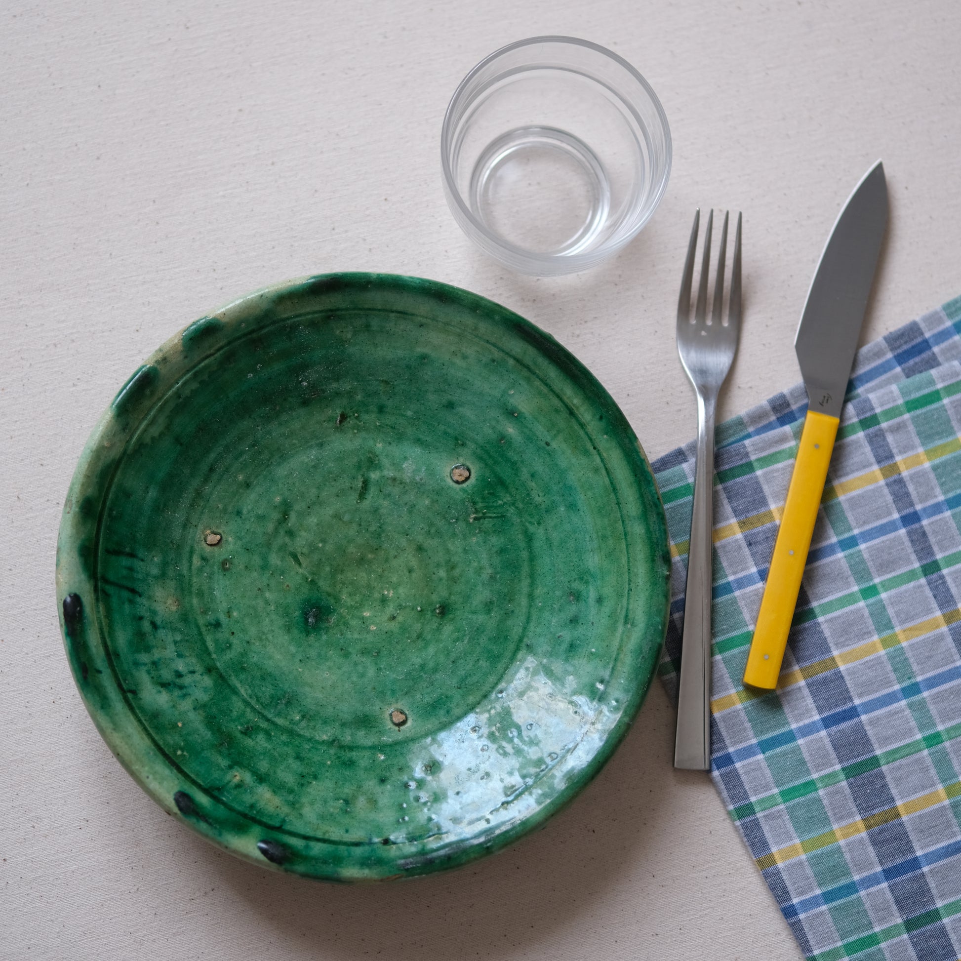 Son manche, aux lignes droites et fines est réalisé en micarta, des fibres de lin compressées. Ce matériau est très résistant aux chocs et à l'humidité, ce qui permet de nettoyer vos couteaux de table au lave-vaisselle. Attention toutefois à ne pas excéder 50°C pour ne pas endommager la lame et le manche.