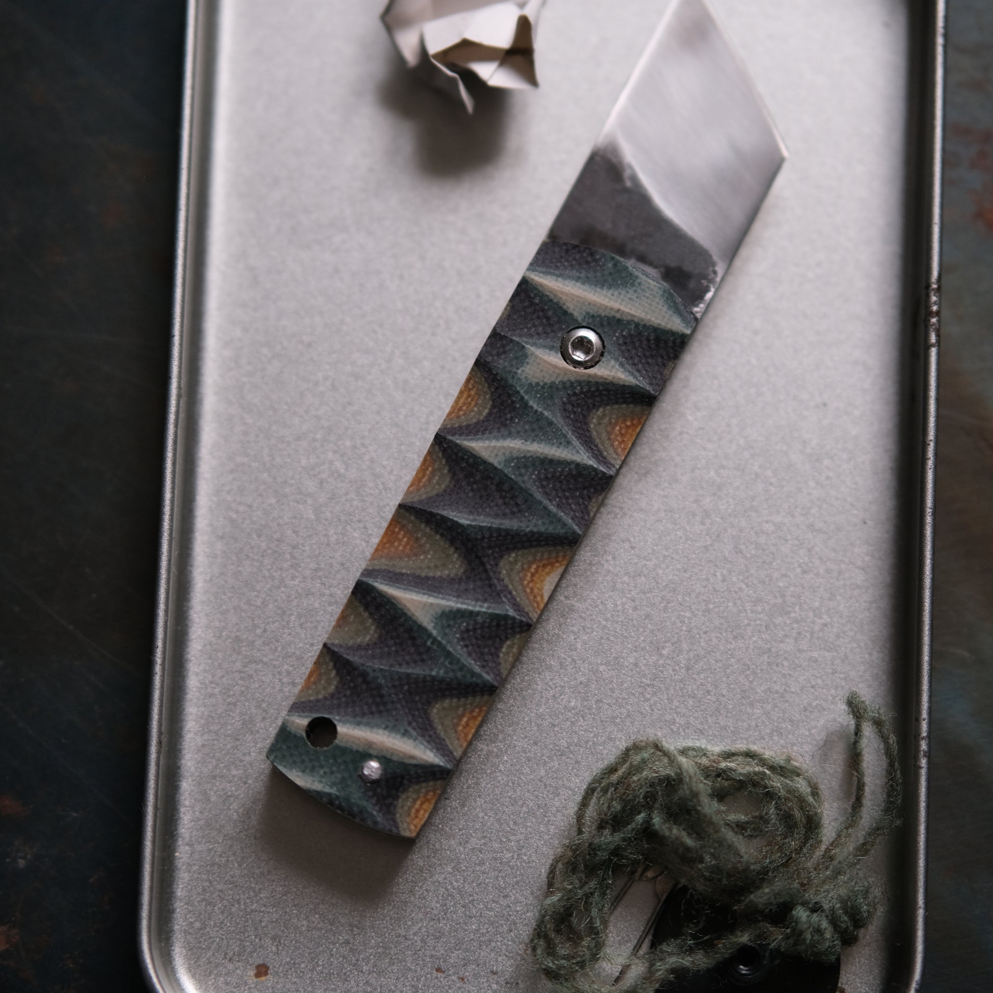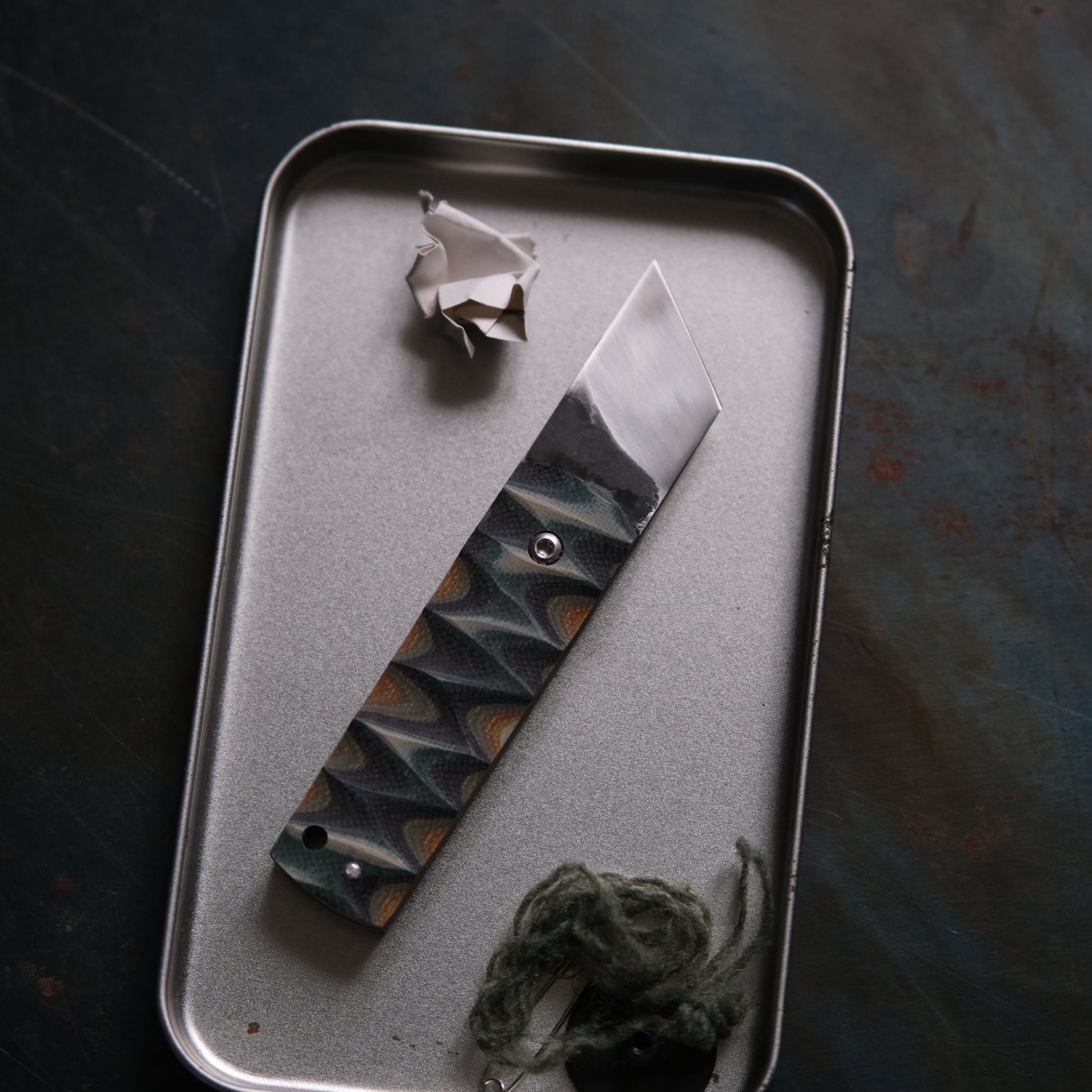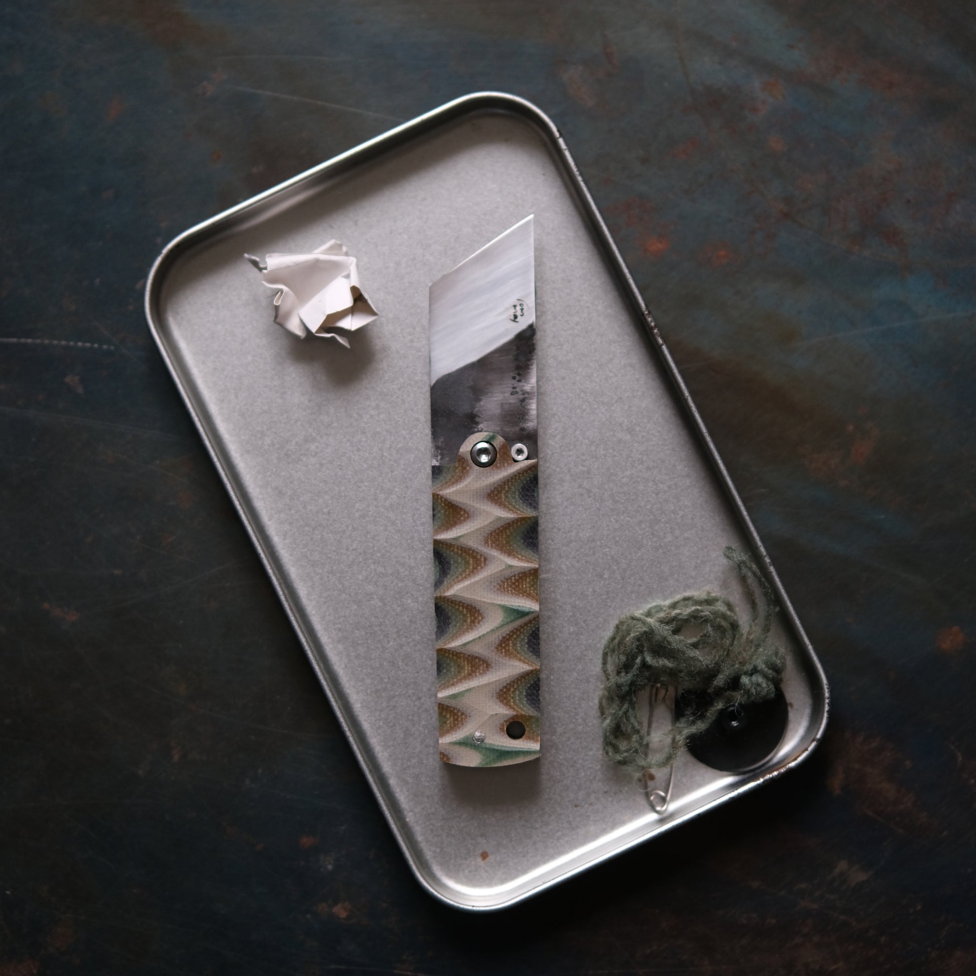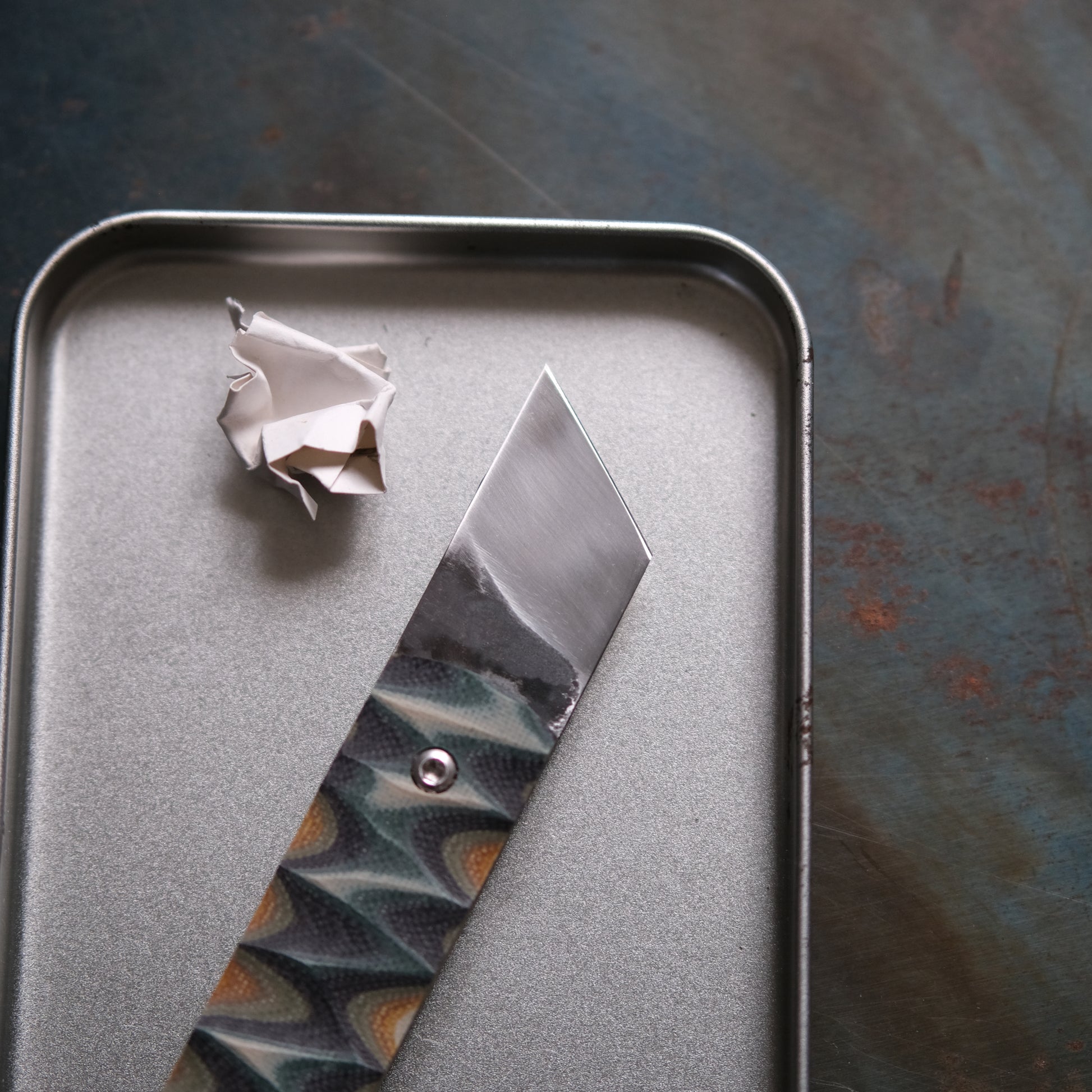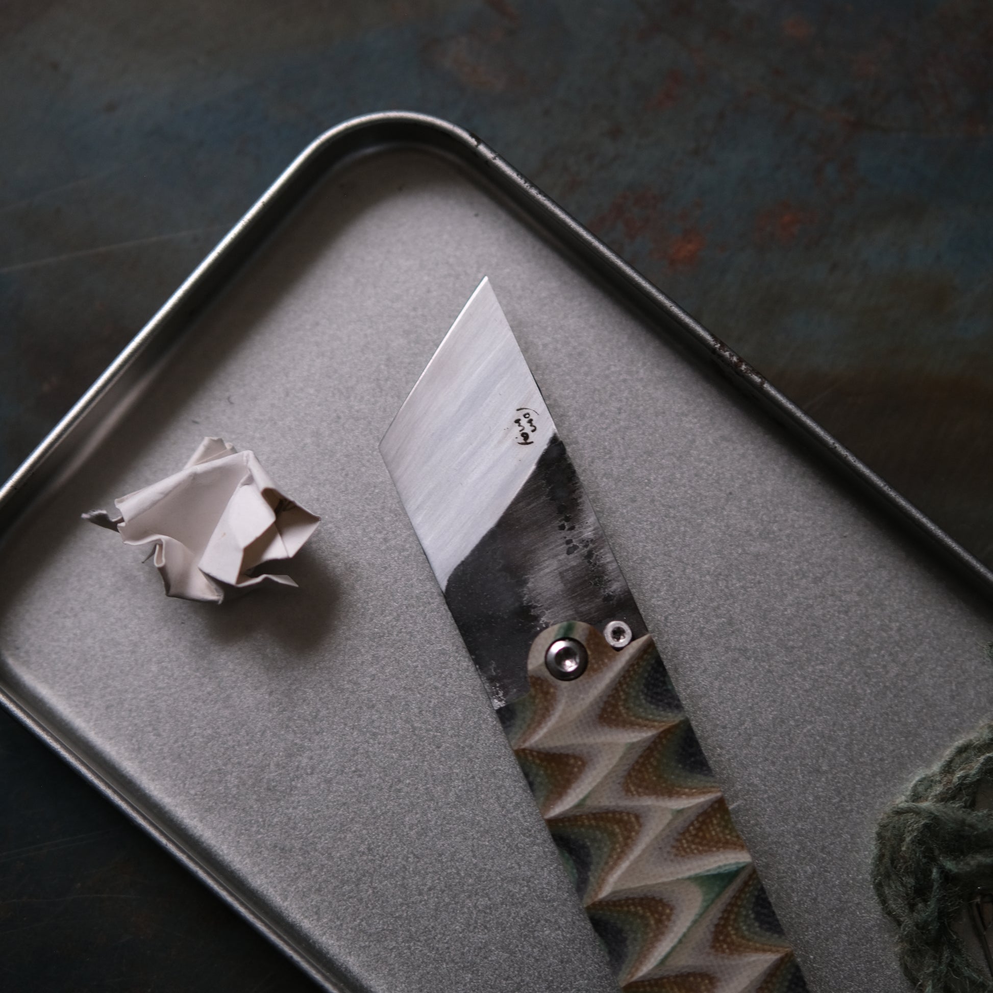 Le couteau pliant SUNBAE est inspiré des cutters japonais, les kiridashis. Il a été réalisé à la main par mes soins, dans mon atelier en Touraine.