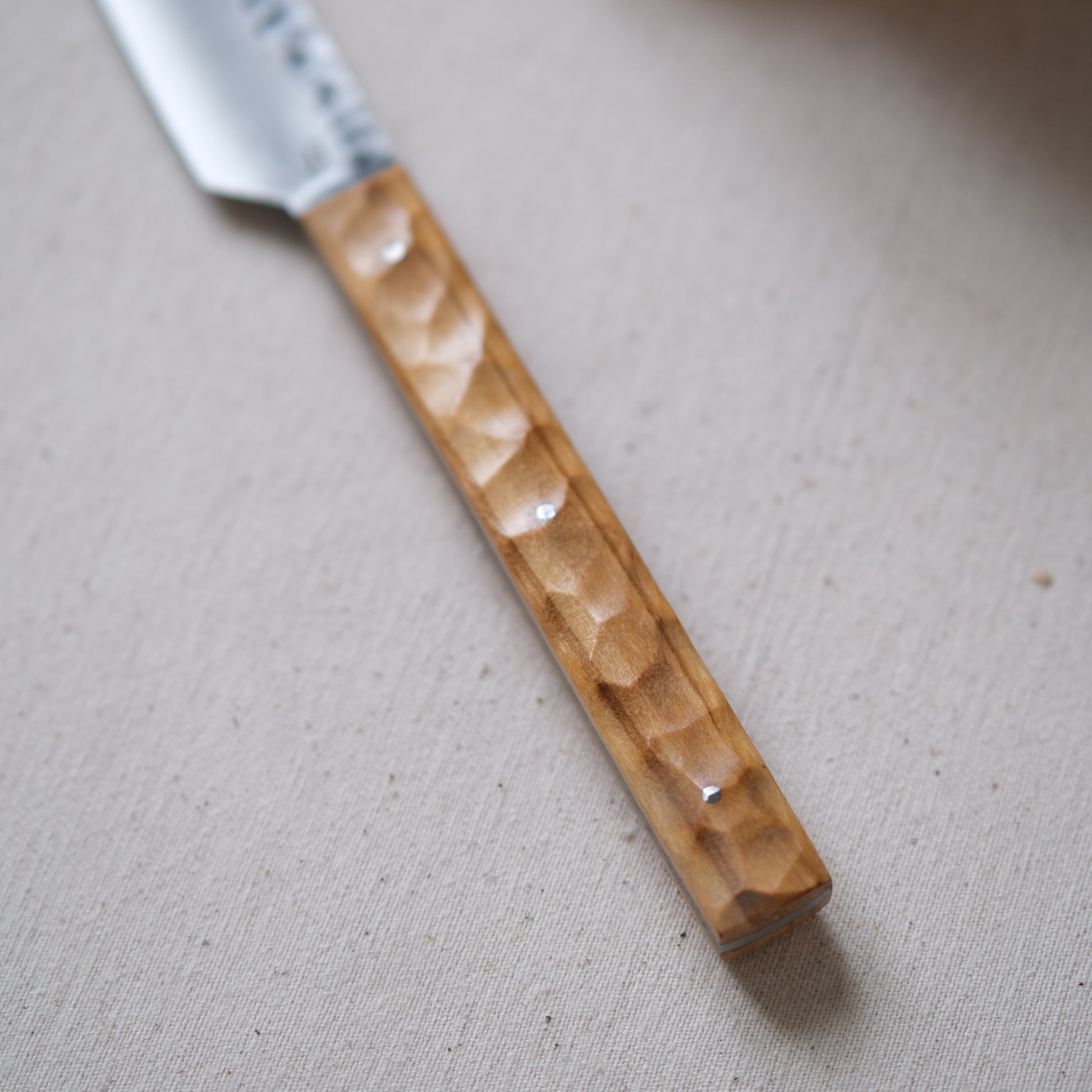 - Manche en olivier texturé.